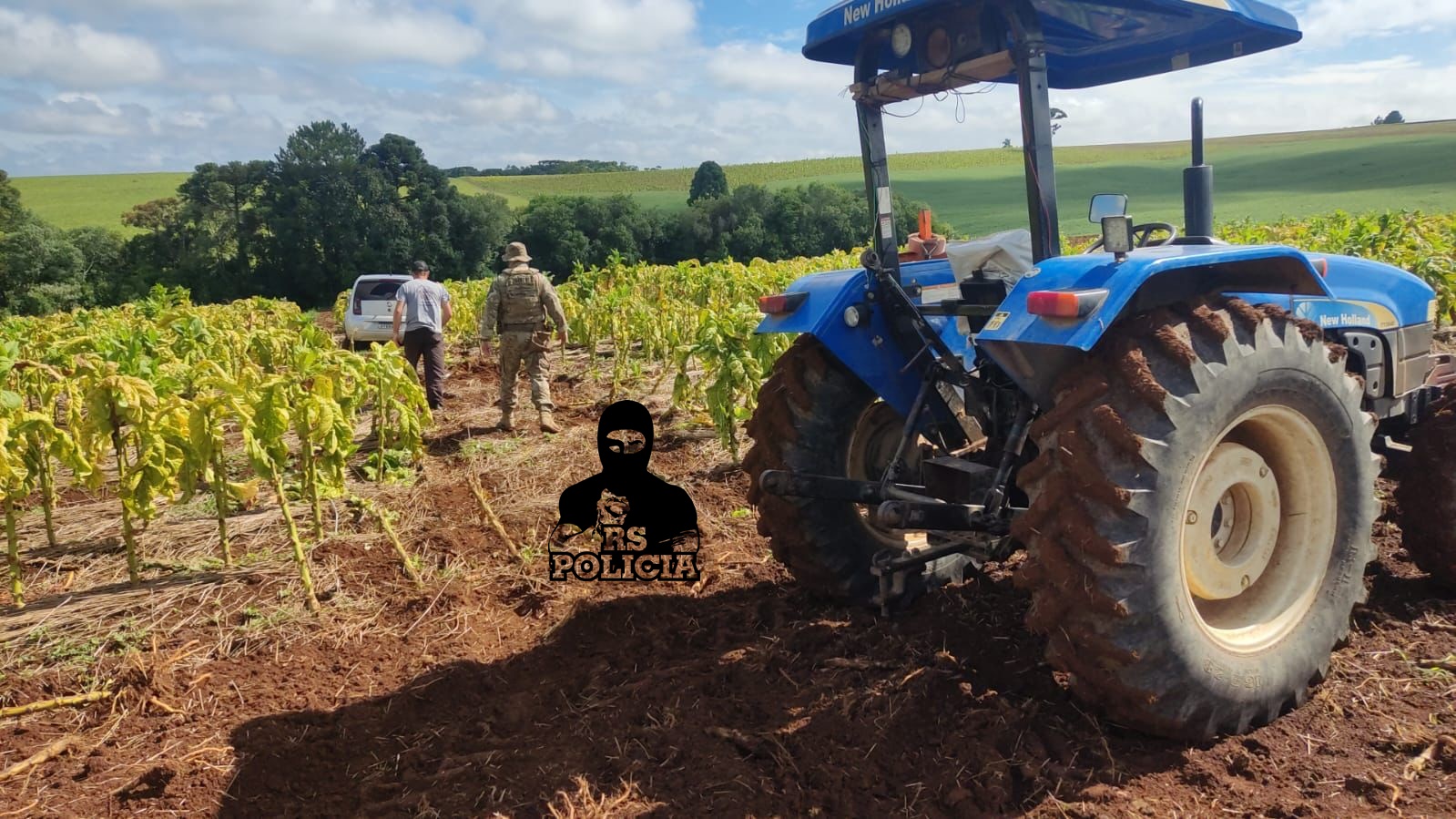 Após alguns quilômetros de acompanhamento, o veículo entrou em uma propriedade rural. Durante a tentativa de fuga, o motorista perdeu o controle da direção e o carro acabou ficando imobilizado em uma área de plantação.